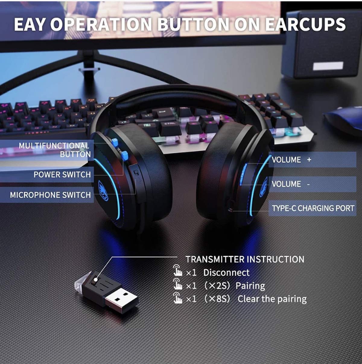 Multi-Platform: Wireless transmitter and AUX cable support PC, PS5, Xbox, Switch, and mobile.