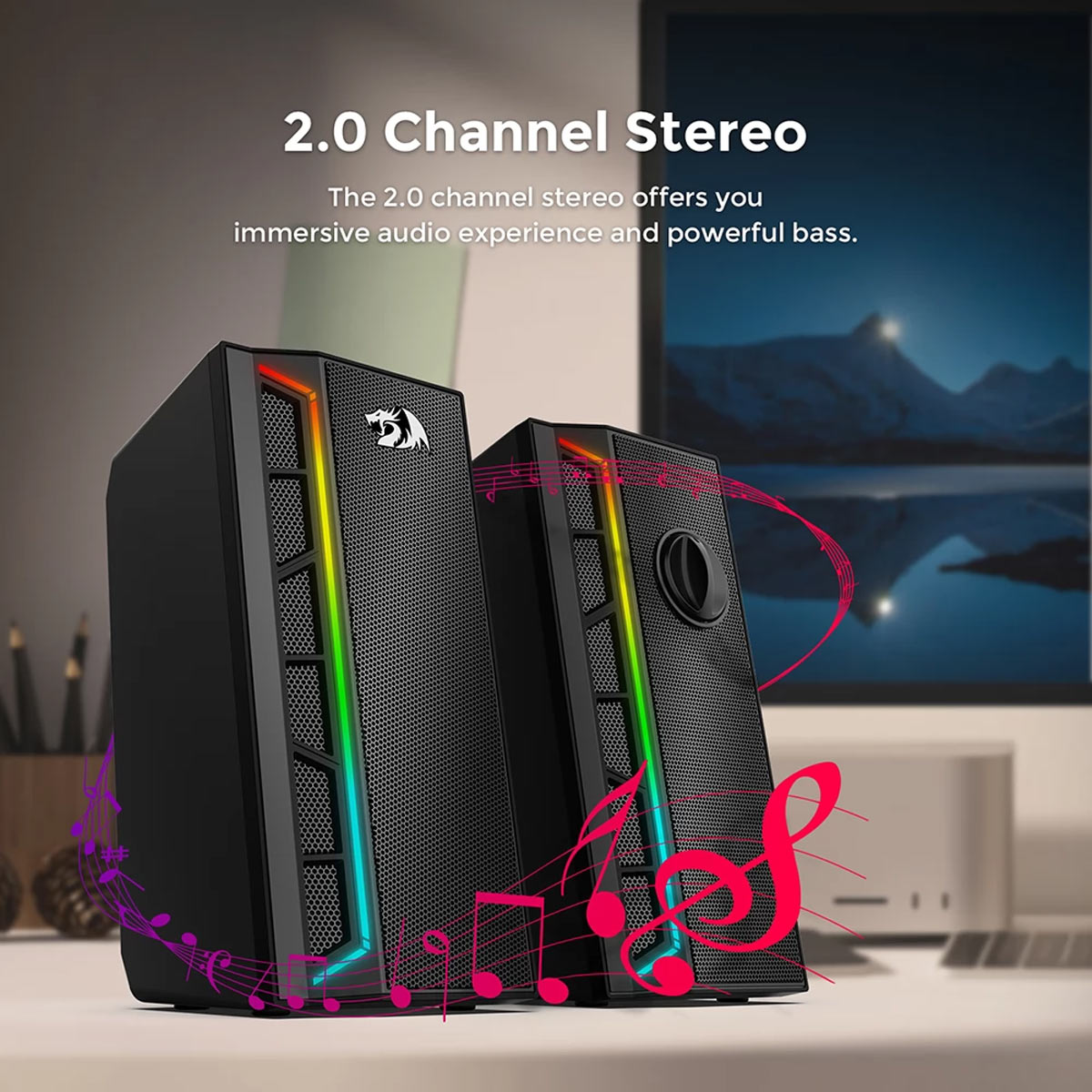 • Enhanced 2.0 Stereo Sound: Dual 8W speakers deliver full-range, immersive audio.