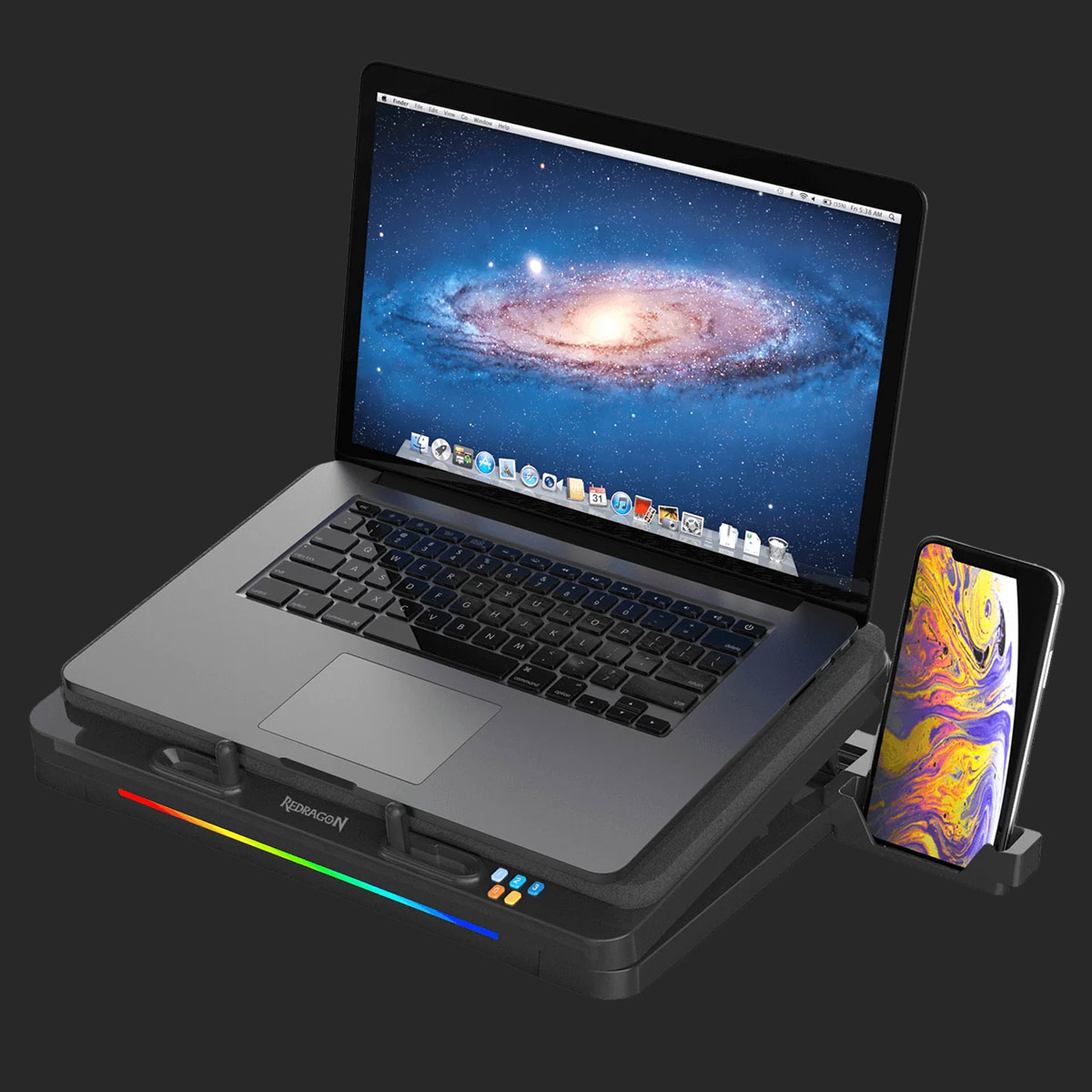 REDRAGON WINDSEEKER GCP512 15 TO 17 INCH COMPATIBILITY ADJUSTABLE HEIGHT AND FAN SPEED QUIET OPERATION RGB LIGHTING PHONE HOLDER GAMING LAPTOP COOLING PAD - BLACK