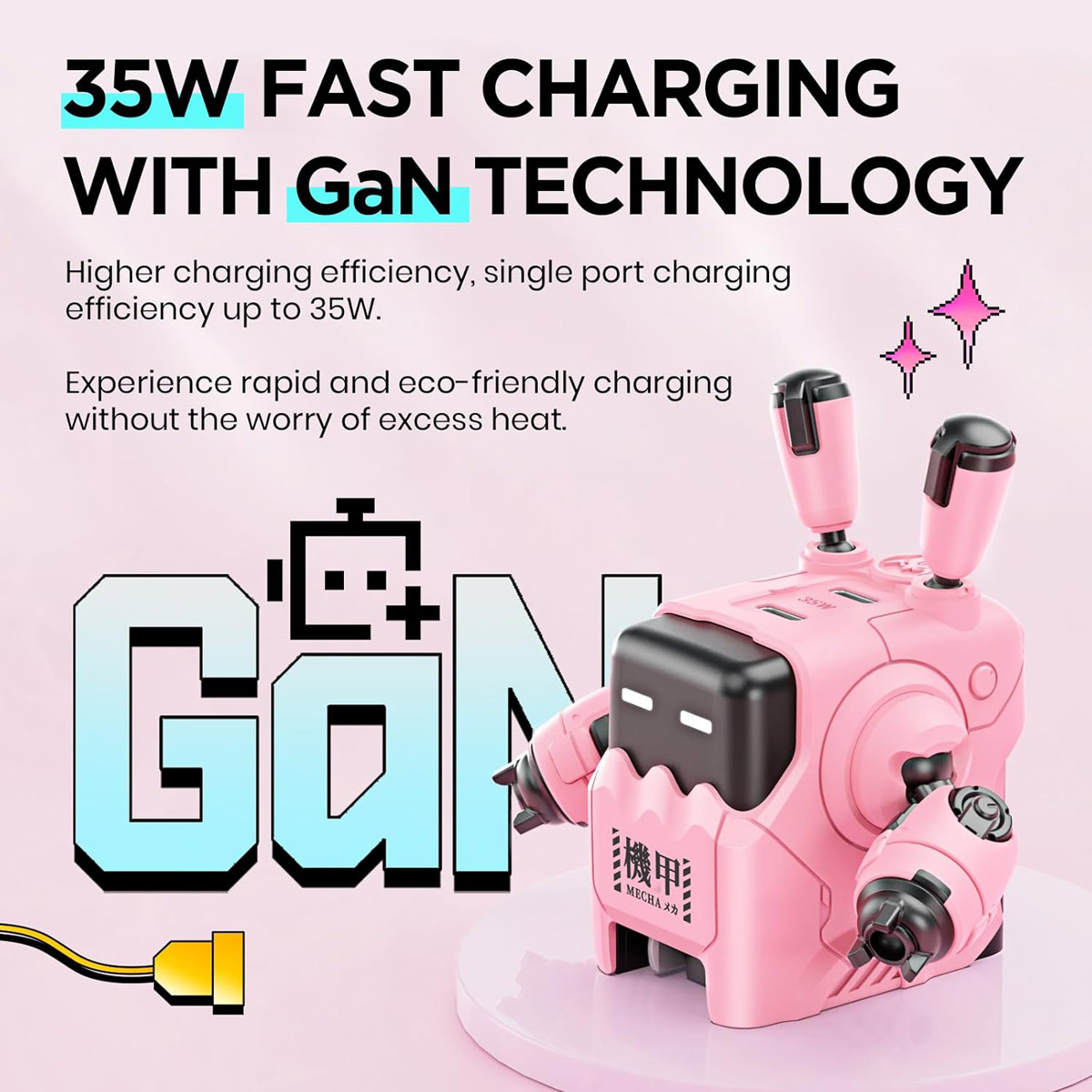 35W GaN Fast Charging: Powers devices efficiently with auto slow-charge mode at 80% for battery safety.
