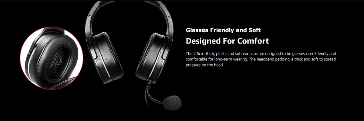 Comfort: 2.5cm-thick soft ear cups designed to be friendly for glasses users.