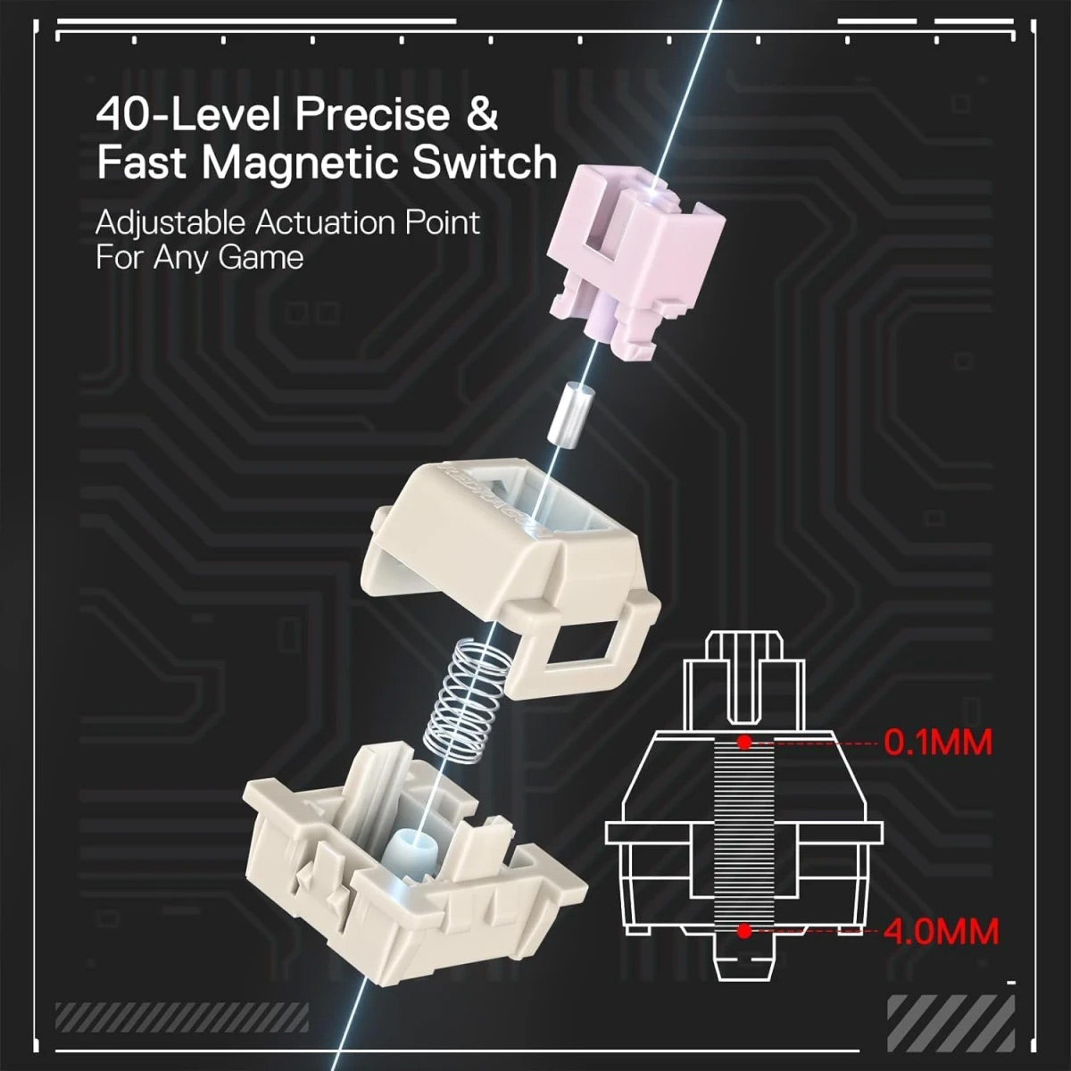 • Precision Rapid Trigger: Adjustable actuation from 0.1mm–4.0mm allows ultra-fast key press/release.