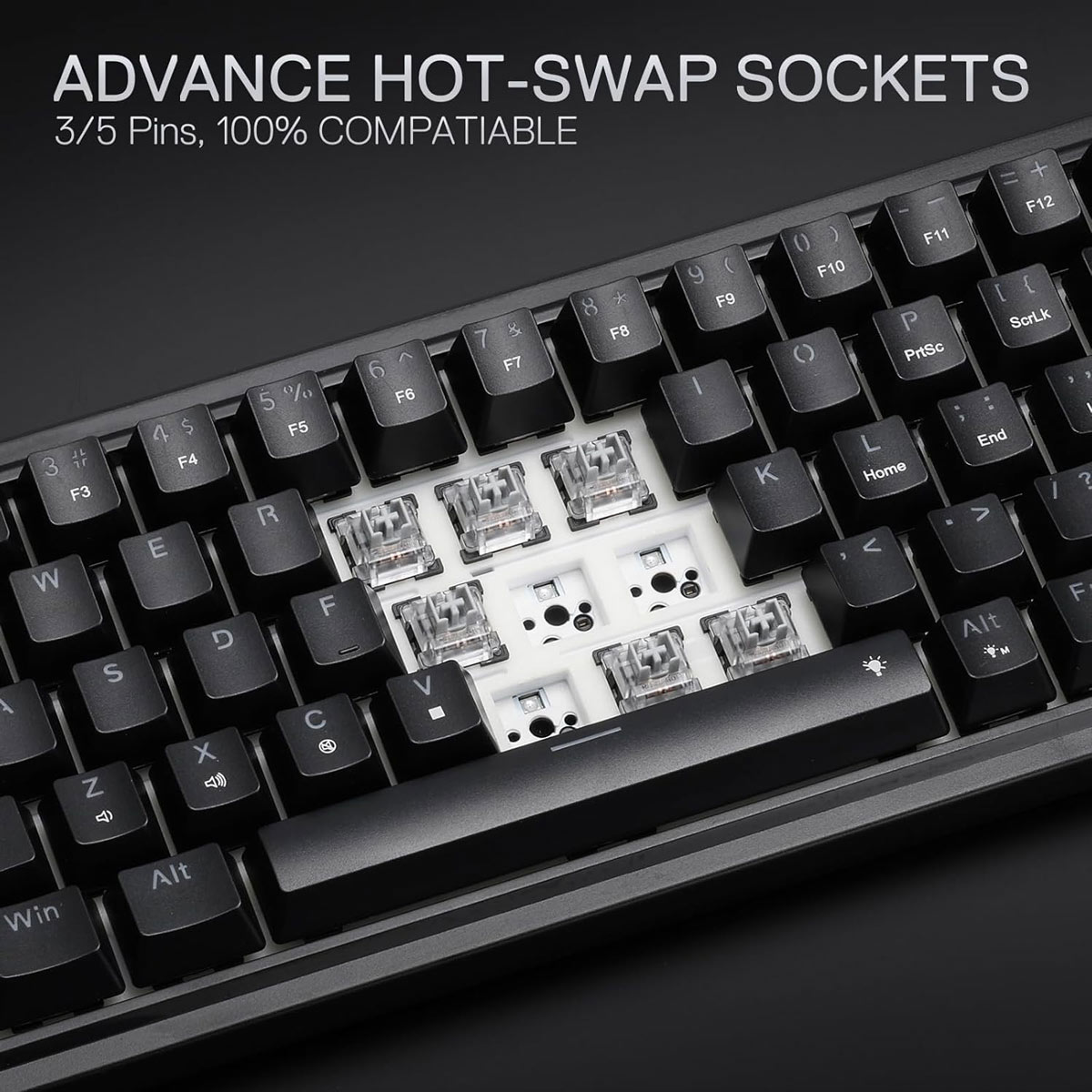 Hot-Swap Ready: Free-mod socket supports 99.8%+ switches for easy swap and stable mounting.