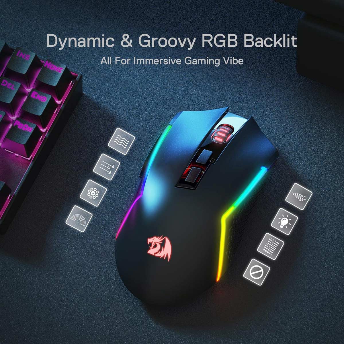 RGB Lighting Control: Customize dynamic effects like breathing and streaming using Redragon software.