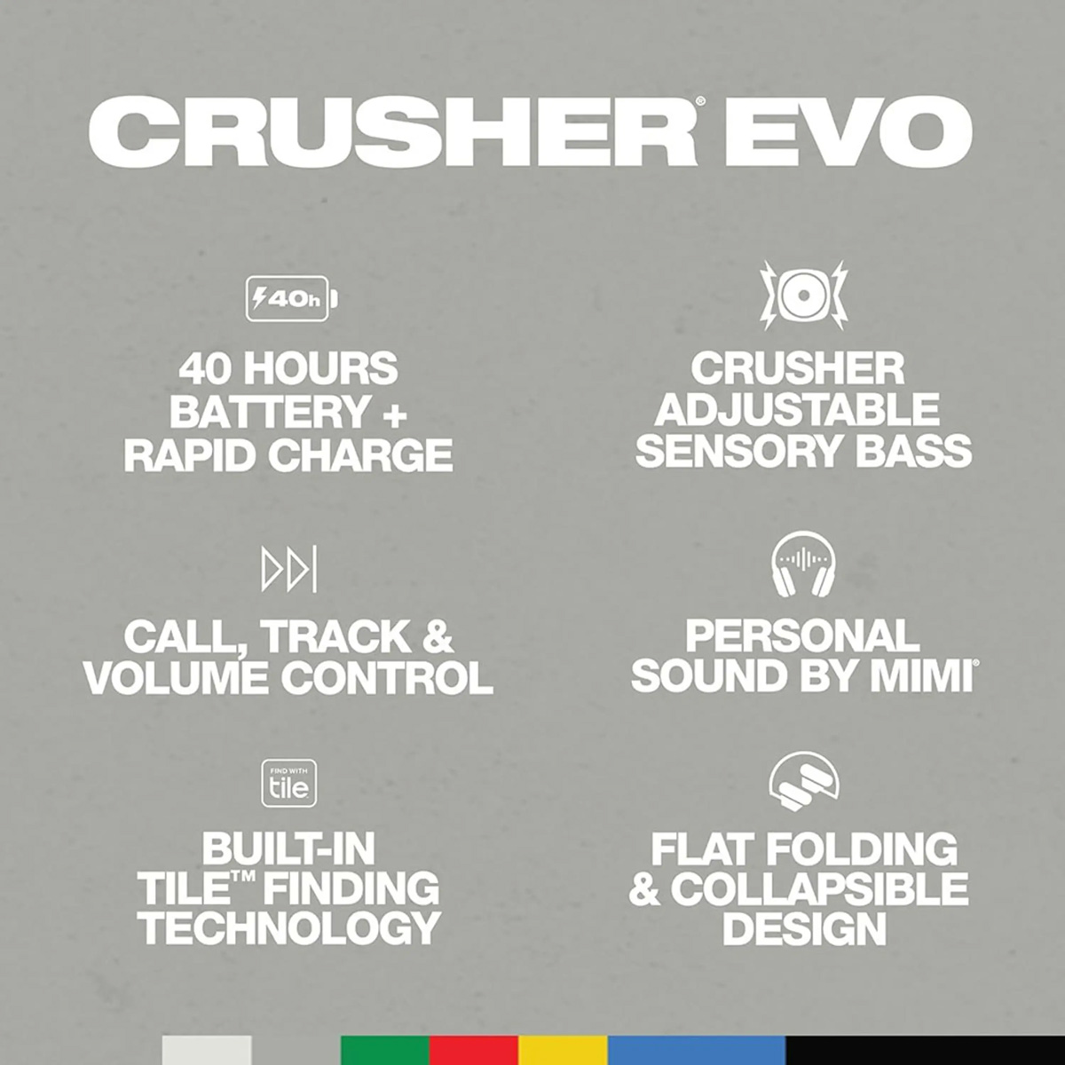 Bass: Patented Multi-Sensory Crusher Bass with dual 40mm drivers for tactile feedback.